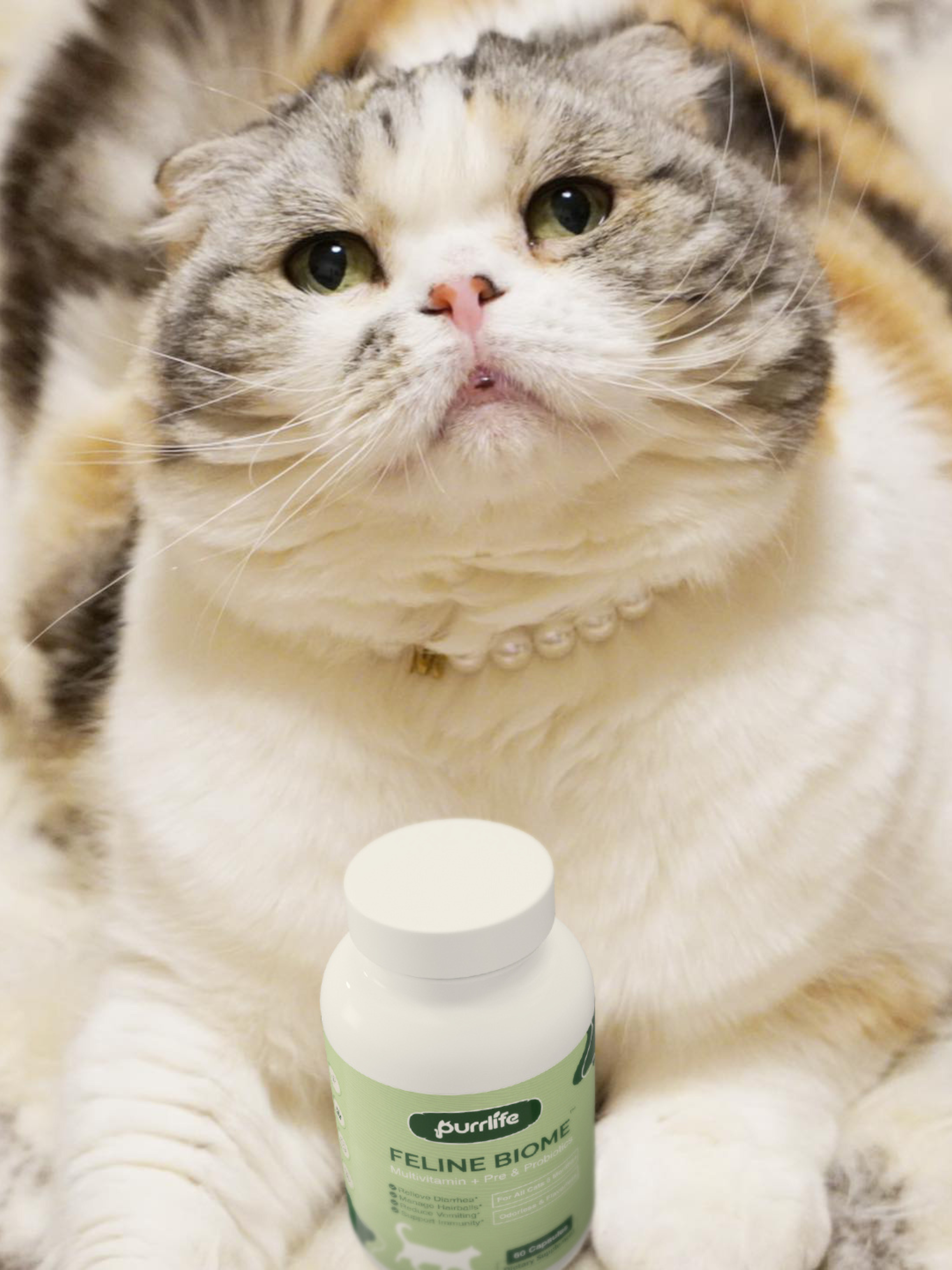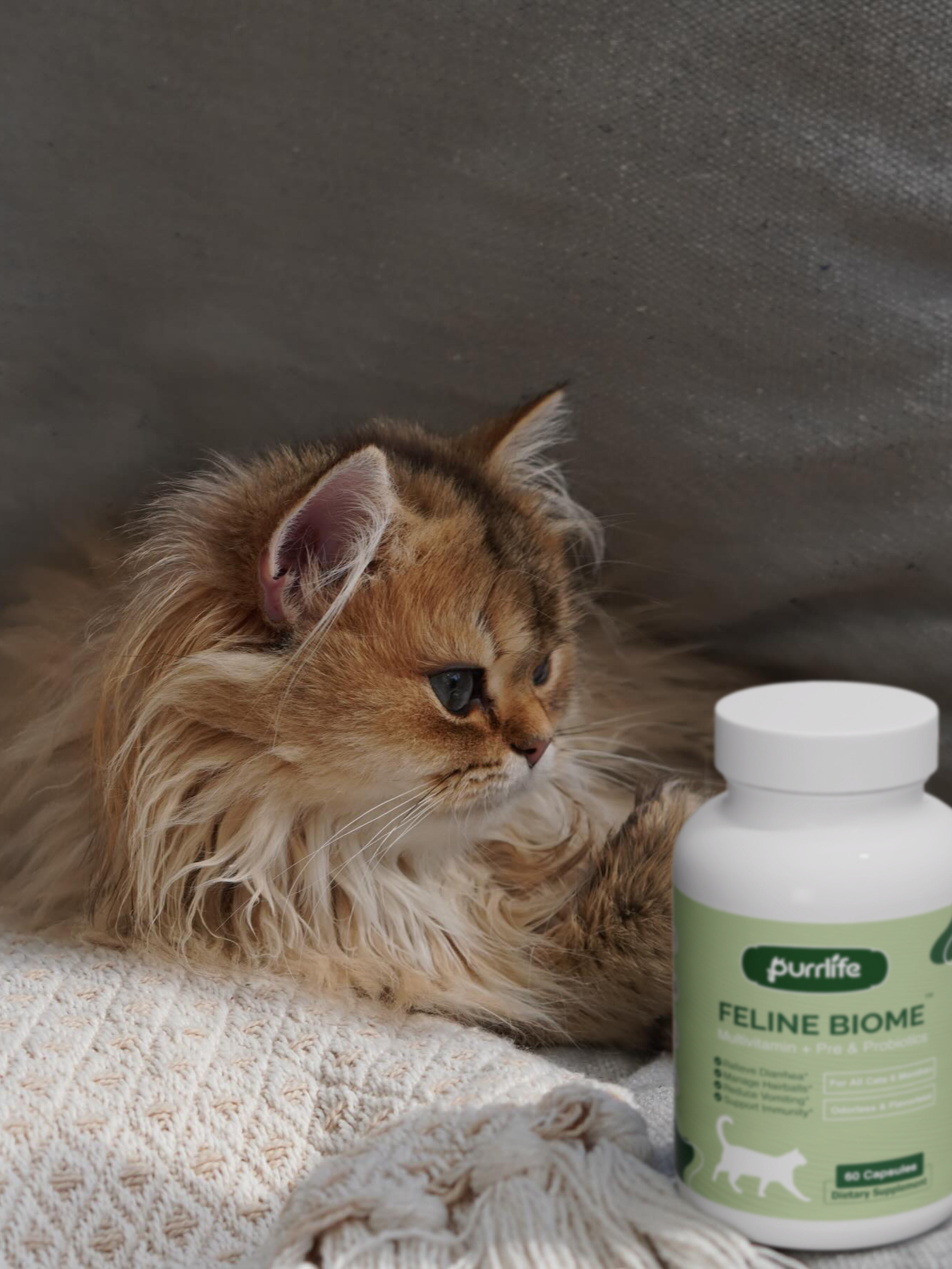 Introducing Feline Biome: A natural blend of pre- and probiotics to help restore your cat's gut health & reverse chronic digestive issues.
