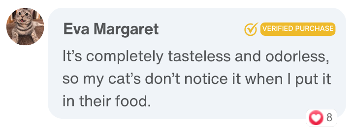 Picky eaters? No problem! Our probiotic powder is completely tasteless and odorless, blending seamlessly into your cat’s food without them noticing—making daily gut health support easy.