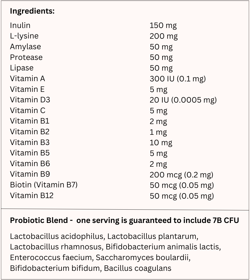 Our probiotic formula is developed with veterinary experts to ensure it provides real, science-backed benefits for your cat’s gut health. Each ingredient is carefully selected to support digestion, immunity, and overall well-being.
