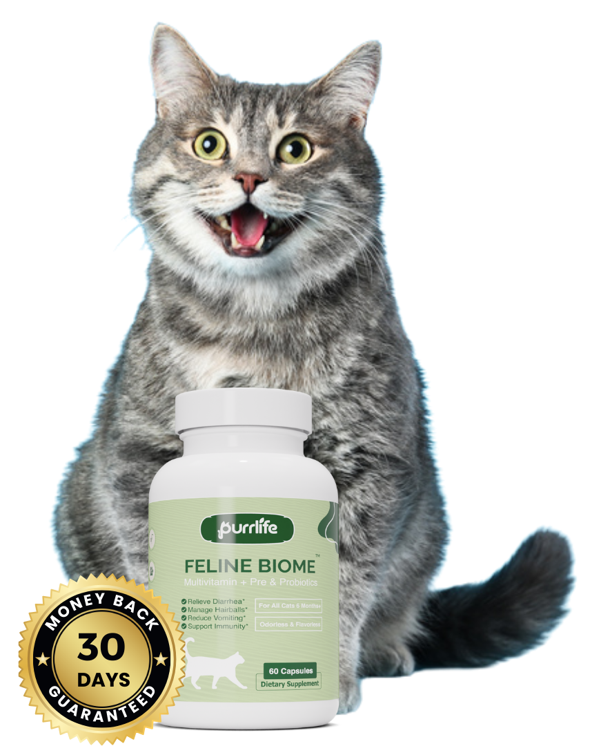 30 Day Trial - We stand 100% behind Feline Biome. If your cat's health doesn't improve, or won't eat food with our supplement in it, we will refund your money, no questions or hassle.