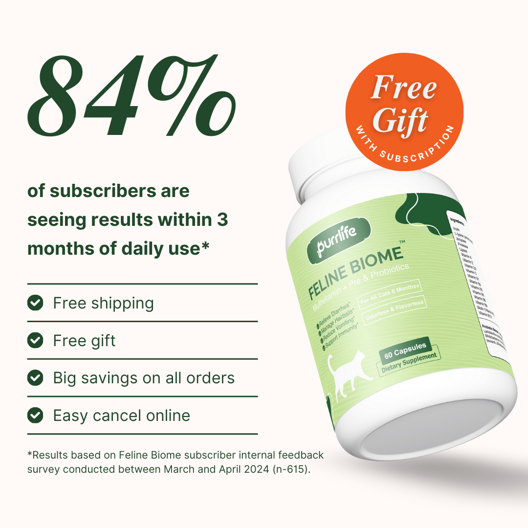 Consistency is key — Feline Biome is fully effective about 8 weeks in.